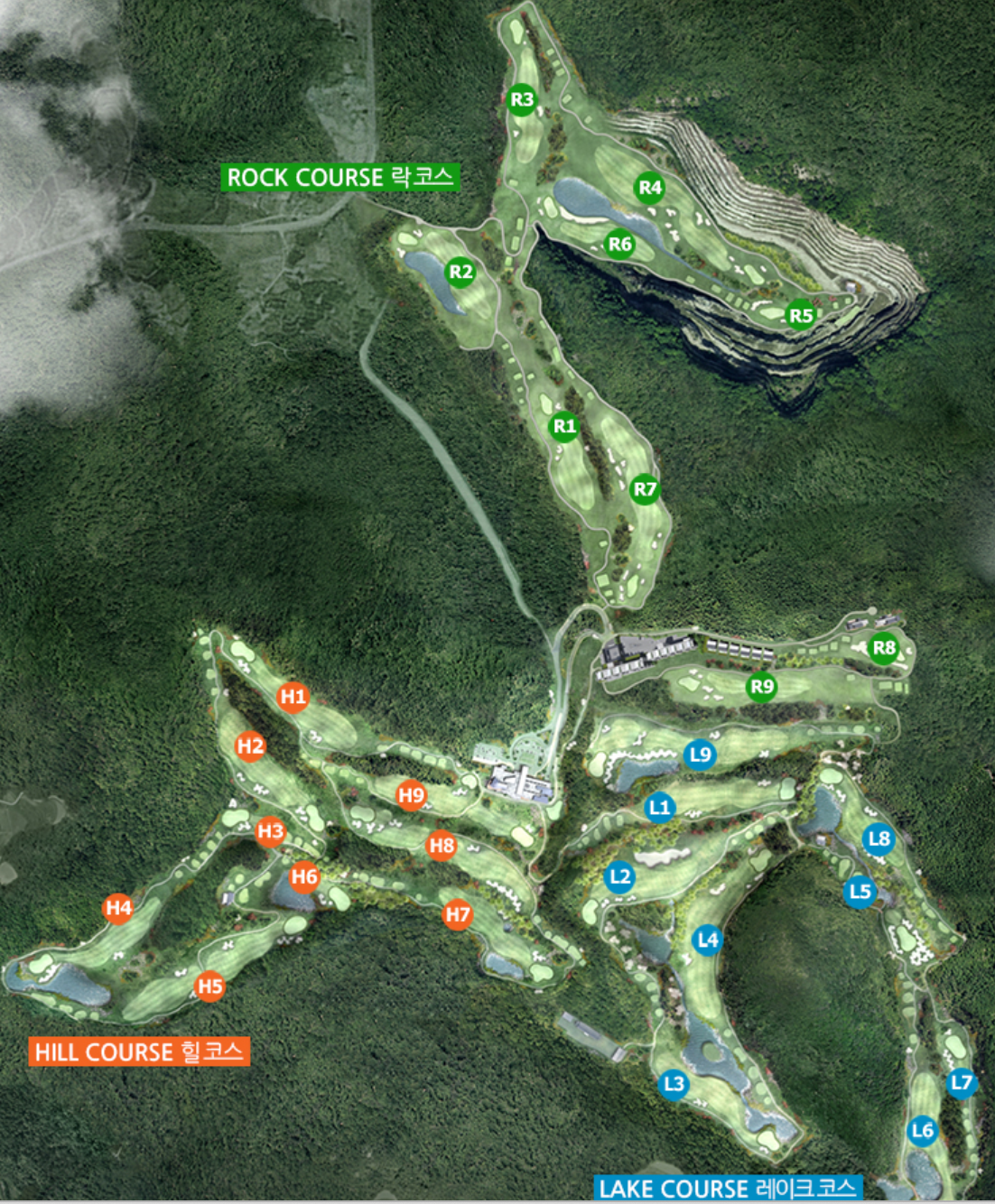 9시 30분 서해바다의 절경이 아름다운 힐코스 9홀, 날아갈 듯 경쾌한 샷으로 라운딩은 시작되었다.(한국 지형을 잘 살린 코스설계), 서해바다를 조망하는 천해의 절경, 12시 정오의 햇살을 가득 머금은 과실들을 보고 있으면 어느새 동심으로 돌아간 것 같다. 14시 굽이 굽이 능선이 매력적인 레이크코스 9홀, 순백 자작나무에 마음을 뺏길지라도 스윙은 정확하게. 16시 온천의 본고장 아산에서 하루의 피로를 씻고 마음까지 건강해지는 이곳. 재미있는 콘셉트의 코스 설계로 이루어진아름다운 cc는 HILL코스와 LAKE코스, ROCK코스로 구성되어 있지만 레이크, 힐 코스로만 운영되는 것 같았습니다.