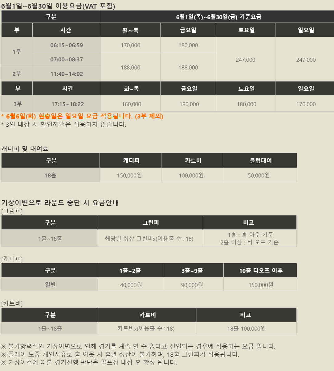 그린피 (3인 내장 시 할인혜택은 적용되지 않습니다.)