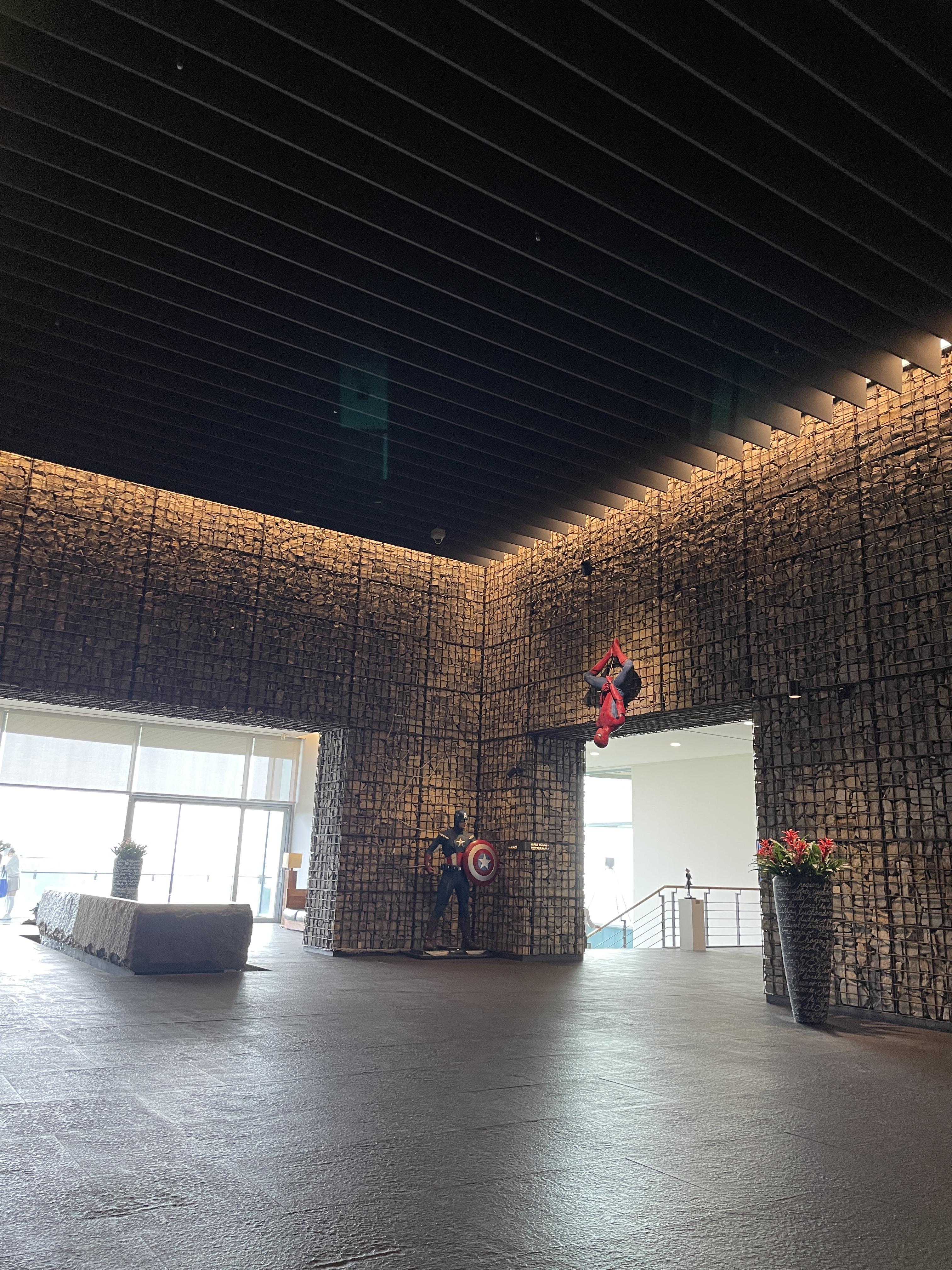 아름다운cc 로비는 여러 가지 조형물이 디자인틱하게 설치되어 있었습니다. 조금 어두운 인테리어로 되어있어서 묵직한 디자인 인테리어 느낌이 들었습니다. 나름 조형에 가치관이 뚜렷한 설계자가 디자인을 해서 그런지 어우러지는 내관이었습니다. 엄청 고급진 인테리어 느낌은 아니었지만 이것이 중요한 것은 아니니 참고만 하시면 될 것 같습니다.