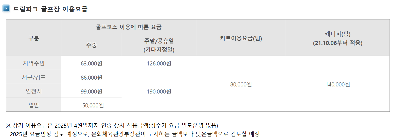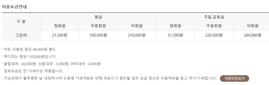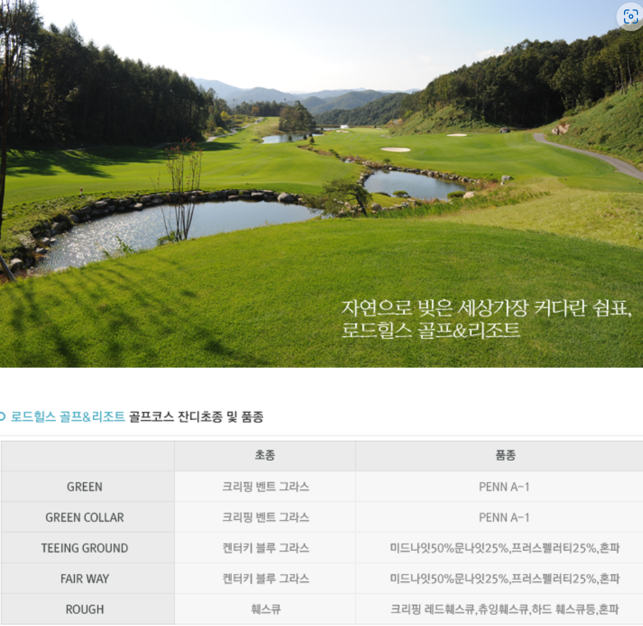 코스 규모 대중제 36홀 (드림코스/파크코스), 벤트그라스, 중지