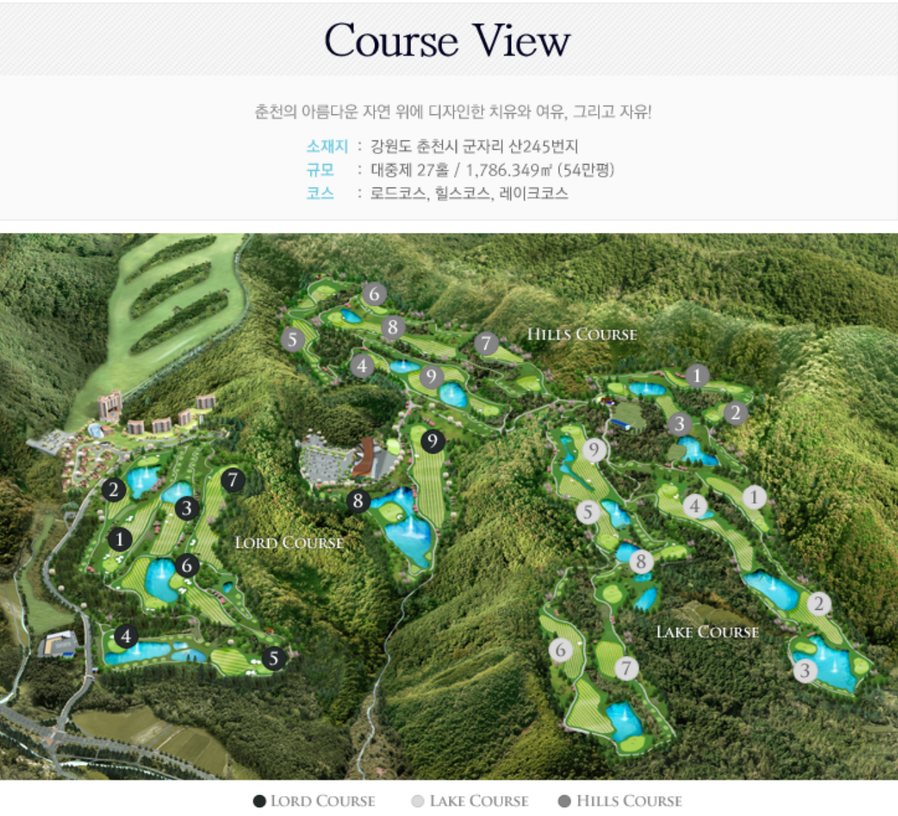 서울에서 40분이면 바로 도착을 할 수 있는 강원 춘천시에 위치해 있습니다. 그린 스피드가 빠른 편이고 프로모션도 많이 하고 있어 서비스 만족적인 측면에서 많이 선호하는 골프장입니다.