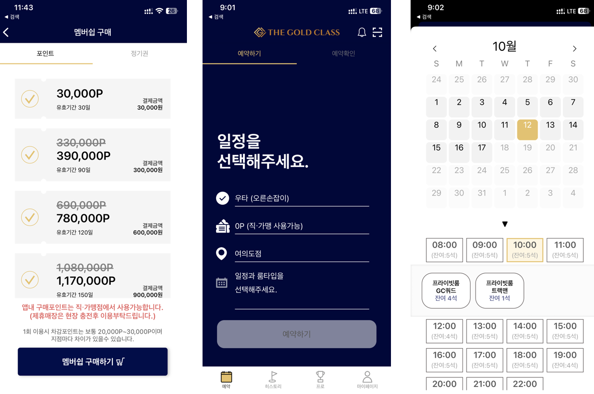 2. 프로 레슨을 잡아도, 따로 룸을 예약해야 합니다. (포인트 차감)