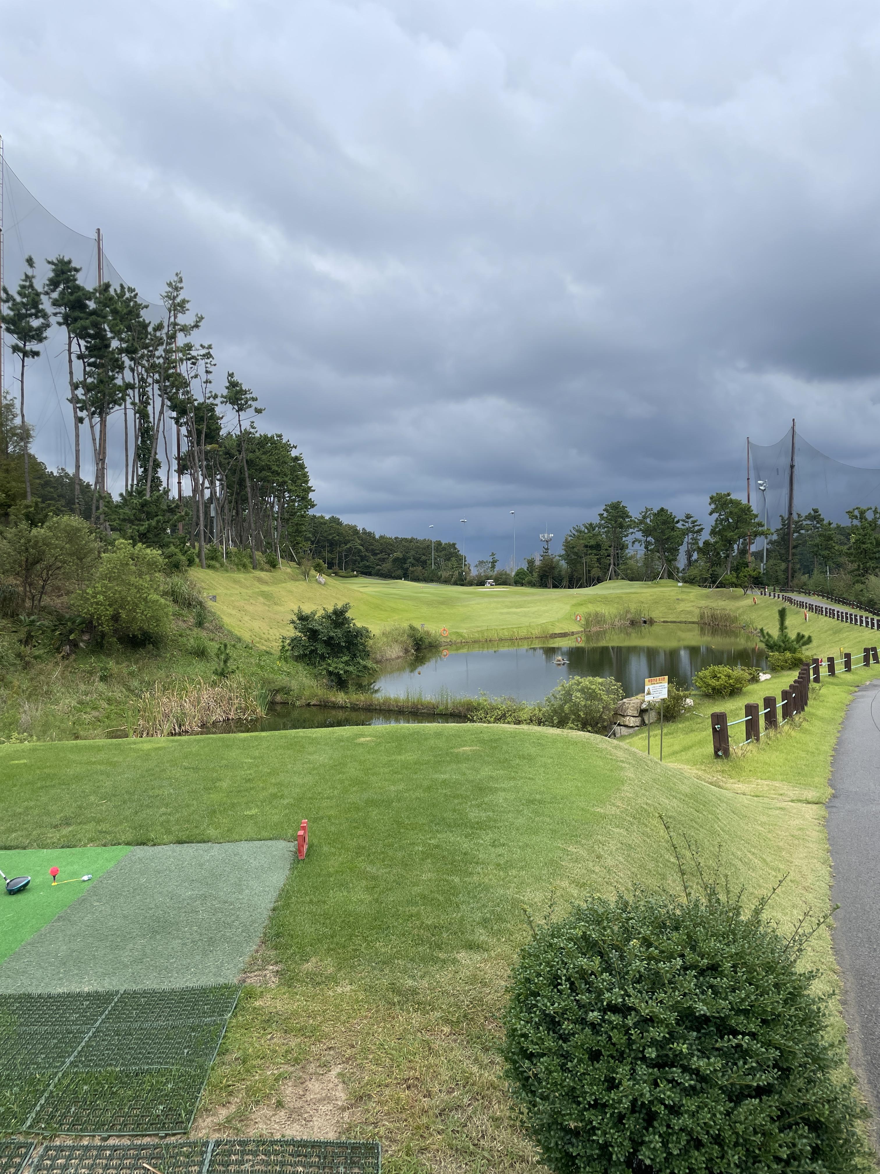 1홀은 매트티샷이었고, 페어웨이는 조금 좁은 편의 느낌이었습니다. 티샷매트에서 해저드를 건너가야 하는 1홀, 전장은 조금 짧게 느껴졌어요. 페어웨이가 좁다 보니 에이밍을 잘못하게 되면 공이 OB나기가 쉬워 보였습니다. 오른쪽에 그물망이 쳐져있는데 그 부분으로 공이 나가면 거의 찾을 수 없어요. 그물망 아래로 러프가 길기도 하고 흙으로 다 막아져 있는 것도 아니라 공을 안 잃는 것이 중요해 보였습니다. 쉬워 보이지만 공을 잘 잃어버릴 것 같은 구장.