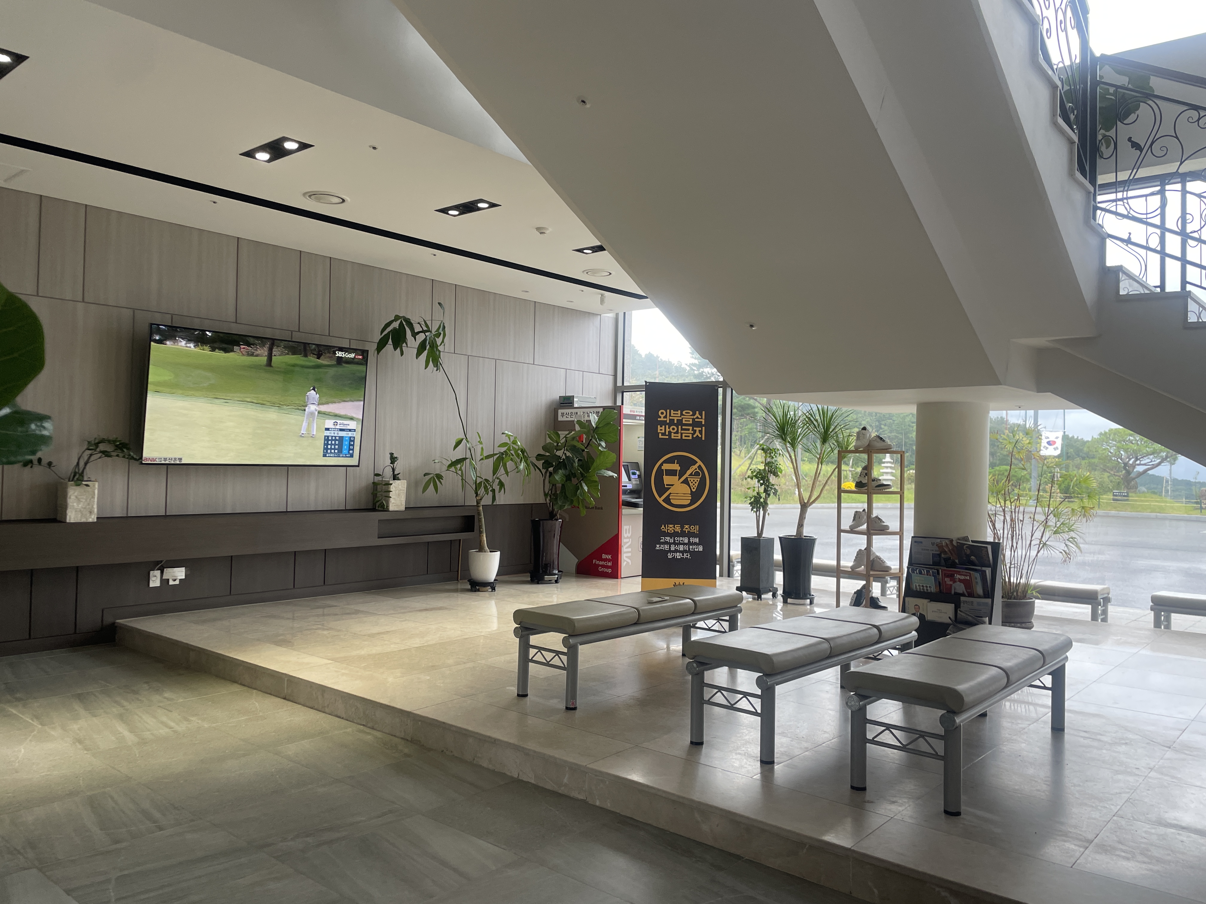주차장에서 캐디백을 내리고 로비로 들어가면 깨끗하게 관리되어 보이는 로비가 있습니다. 그린피 비용은 그린피, 카트 해서 15만 원 정도 선결제했습니다. 프런트 데스크 직원들은 친절했습니다. 클럽하우스는 큰 편이 아니고 조금 작은 편이었지만 락커룸은 깨끗하고 넓었습니다. 락커룸 도어는 다른 곳과 동일하게 되어있어요.