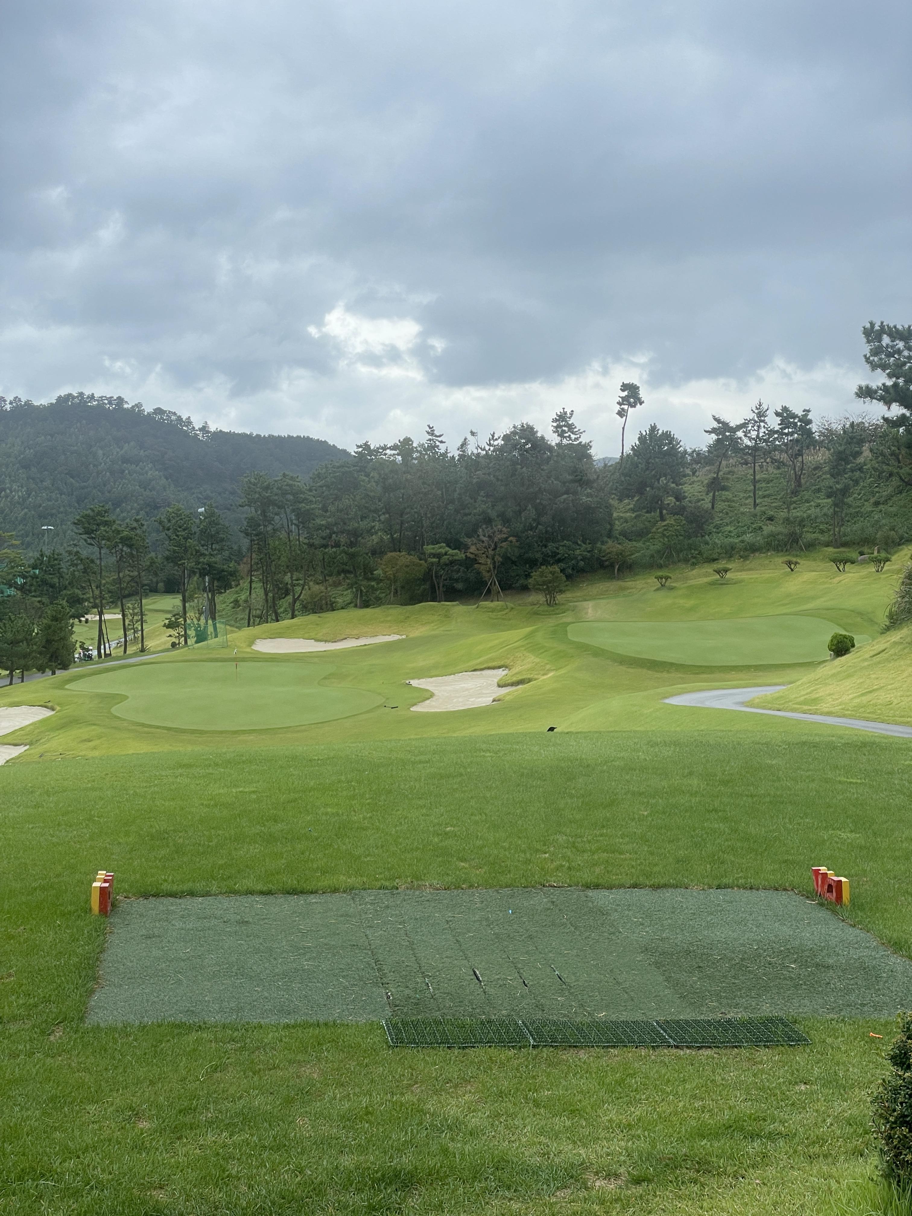 9홀 2바퀴라 좌그린, 우그린 운영 하는데 미리 캐디님한테 핀위치 확인하는 것이 좋습니다. 저는 착각해서 좌그린 핀인데 우그린으로 올려서 헤맸습니다.