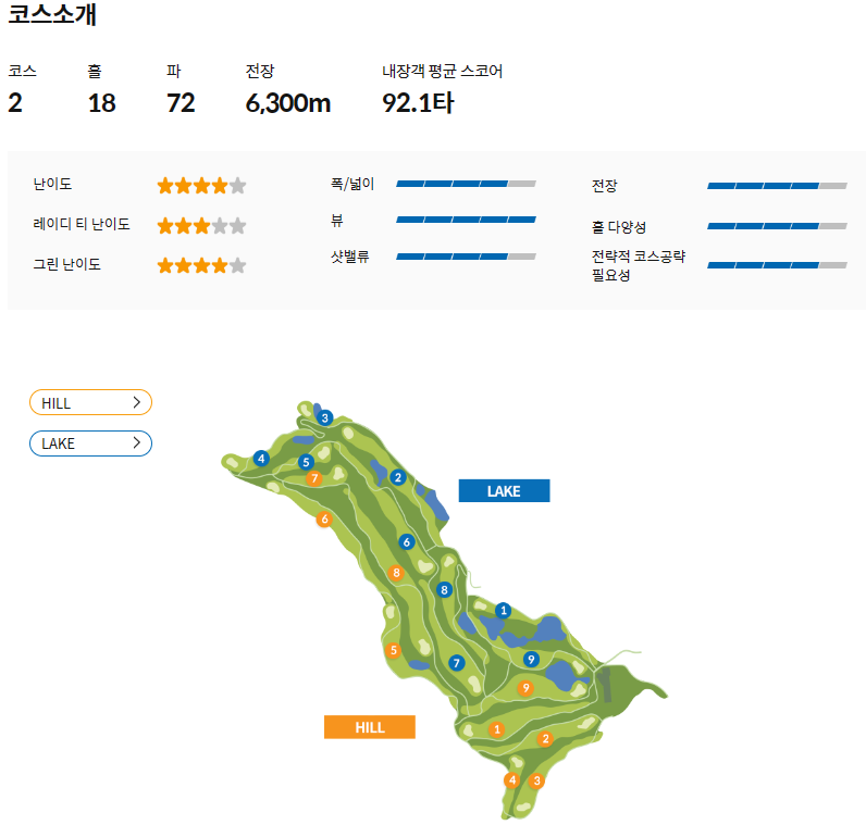 코스전장( Hill / Lake코스)