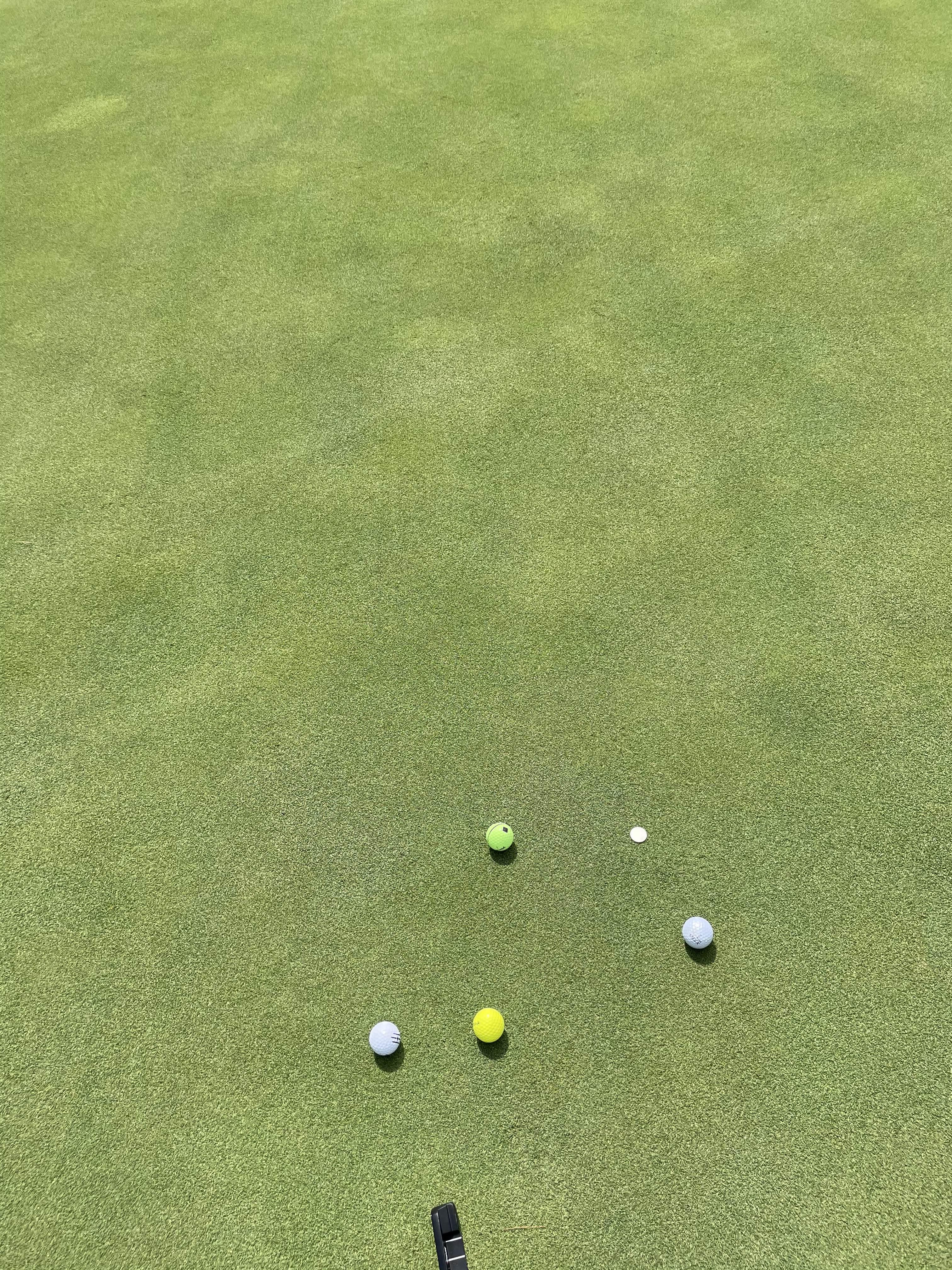 퍼팅연습장의 그린 상태는 좋았어요. 이곳에서 그린빠르기 적응 연습을 했습니다. 그린빠르기는 2.6m로 스크린으로 치면 보통난이도였습니다. 그린도 공을 꽤 잘 받아주는 편으로 느껴졌습니다.