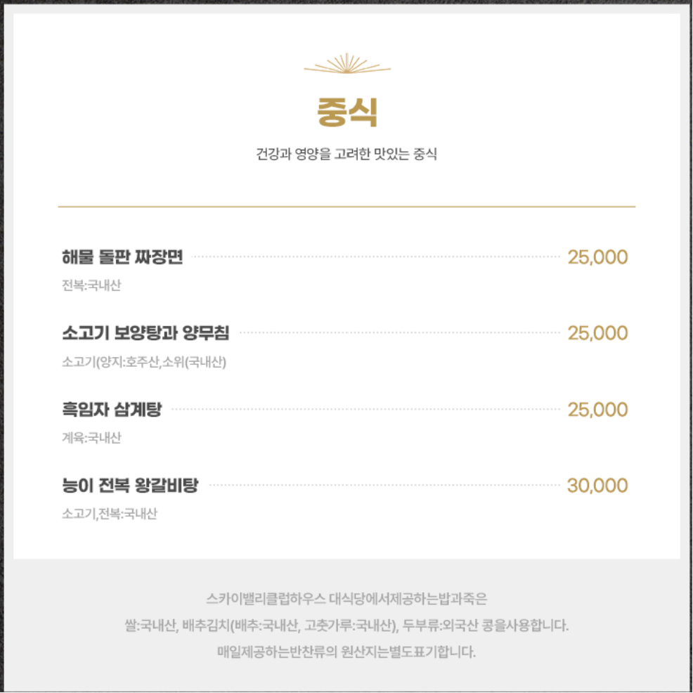 저는 2부 티업으로 17만 원에 라운드를 진행했습니다. 스카이밸리 CC는 다른 구장과 다르게 특별한 점이 있습니다. 조식이 단 메뉴가 아닌 뷔페식으로 되어있습니다. 스카이밸리는 조식, 중식 모두 뷔페로 운영되고 있습니다. 조식을 뷔페로 하는 곳은 처음 와보았는데 맛도 괜찮았고 가격대비 좋았습니다. 가격은 19,000원입니다. 그런데 많이 먹으면 또 공칠 때 힘들 수 있으니 적당히 먹고 라운드를 해야겠죠?