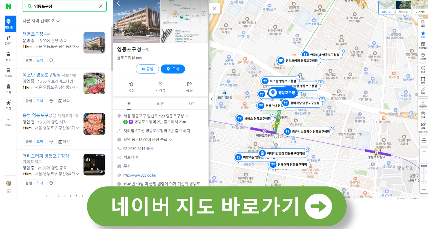 영등포 구청 입구 모습입니다. 옆건물은 보건소인데 헷갈리지않고 구청건물로 들어가야 해요.