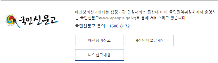국민권익위원회에서 운영하는 국민신문고를 통해 예산낭비 신고를 할 수 있습니다.