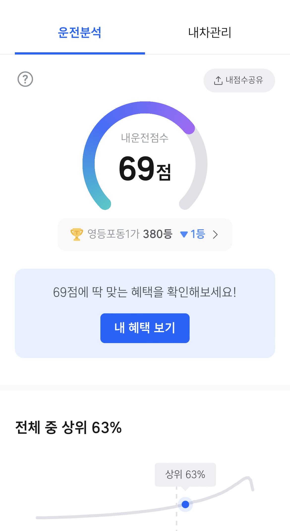 티맵의 운전점수를 통해, 보험의 할인혜택도 받을 수 있으니 점수 관리를 잘 해야 합니다.
