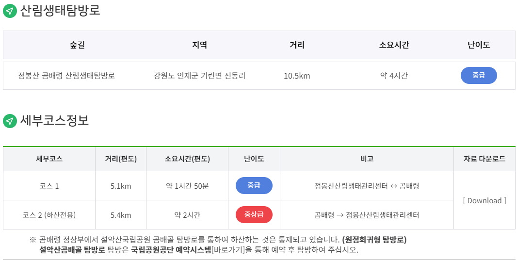 곰배령은 예약제이고 국립공원과 산림청에서 예약이 가능합니다.
