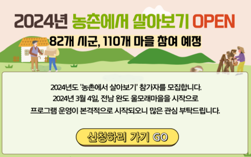 아래 OPEN링크 클릭하여 농촌에서 살아보기 프로그램 지원하러 GO.
