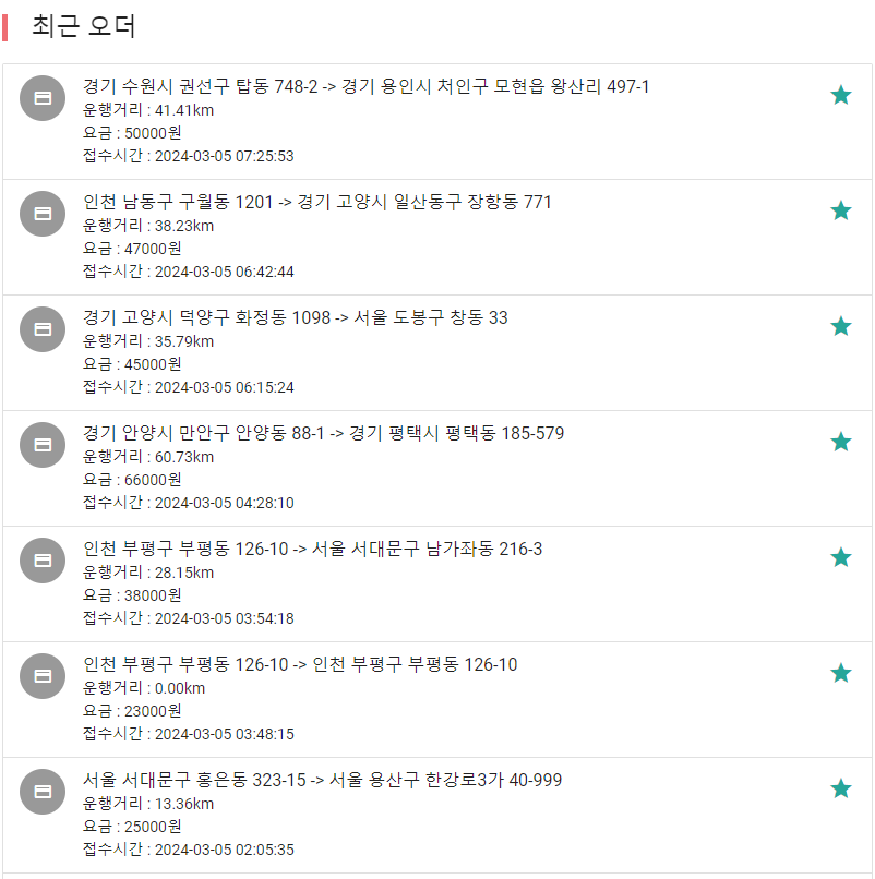 최근에 다른 누군가 이용한 내역이 나오기때문에 참고하시면 좋을 것 같습니다.