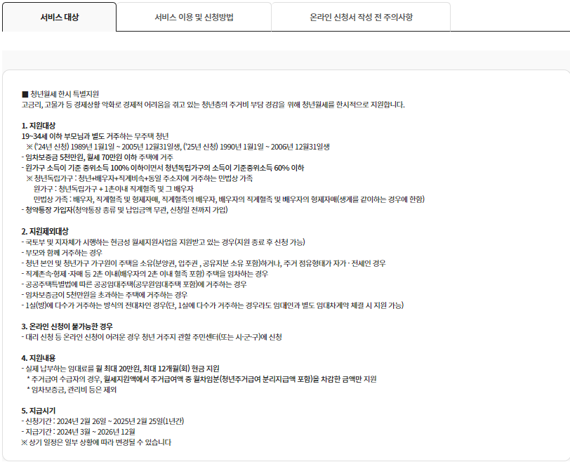 청년통장이 가입된 청년(19~34세) 이하의 무주택 청년에게 청년월세를 한시적으로 특별지원 해주고 있습니다. 청년월세 한시 특별지원의 2차 대상되는지 확인해보세요.
