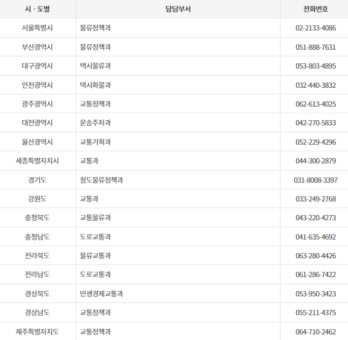 각 시, 도, 시, 군, 구의 화물 담당과 또는 교통담당과에 신고하면 됩니다.