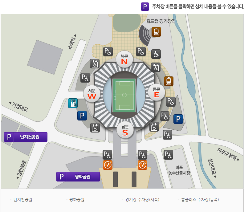 상암월드컵 경기장은 하이브리드잔디로 총 좌석수 66,704석의 아시아 최대규모의 축구전용 경기장입니다.
