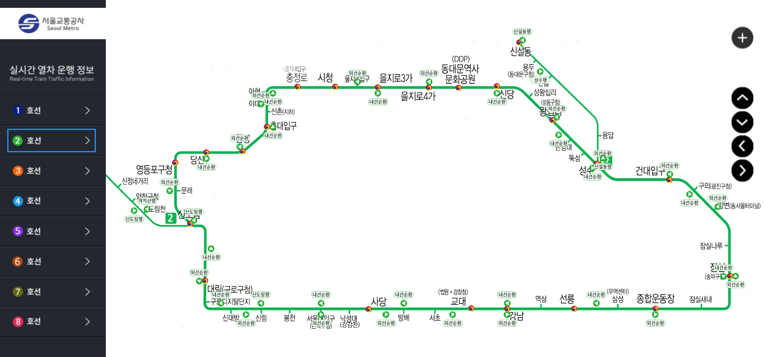 호선 별 실시간 열차 운행정보 확인