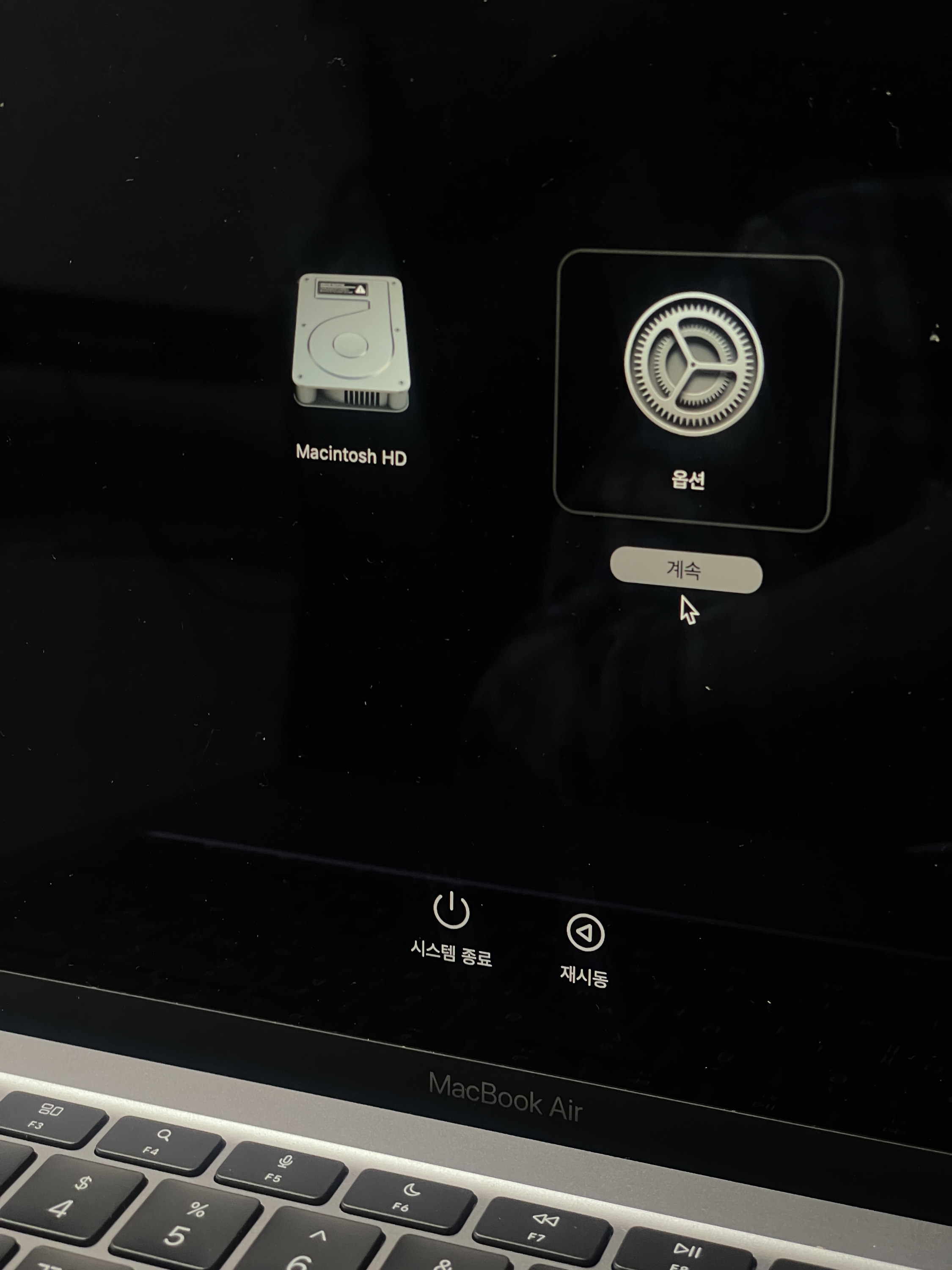 5. 일정시간 (1시간 20분 정도 내)이 지나면 맥북 자동으로 초기화됩니다.