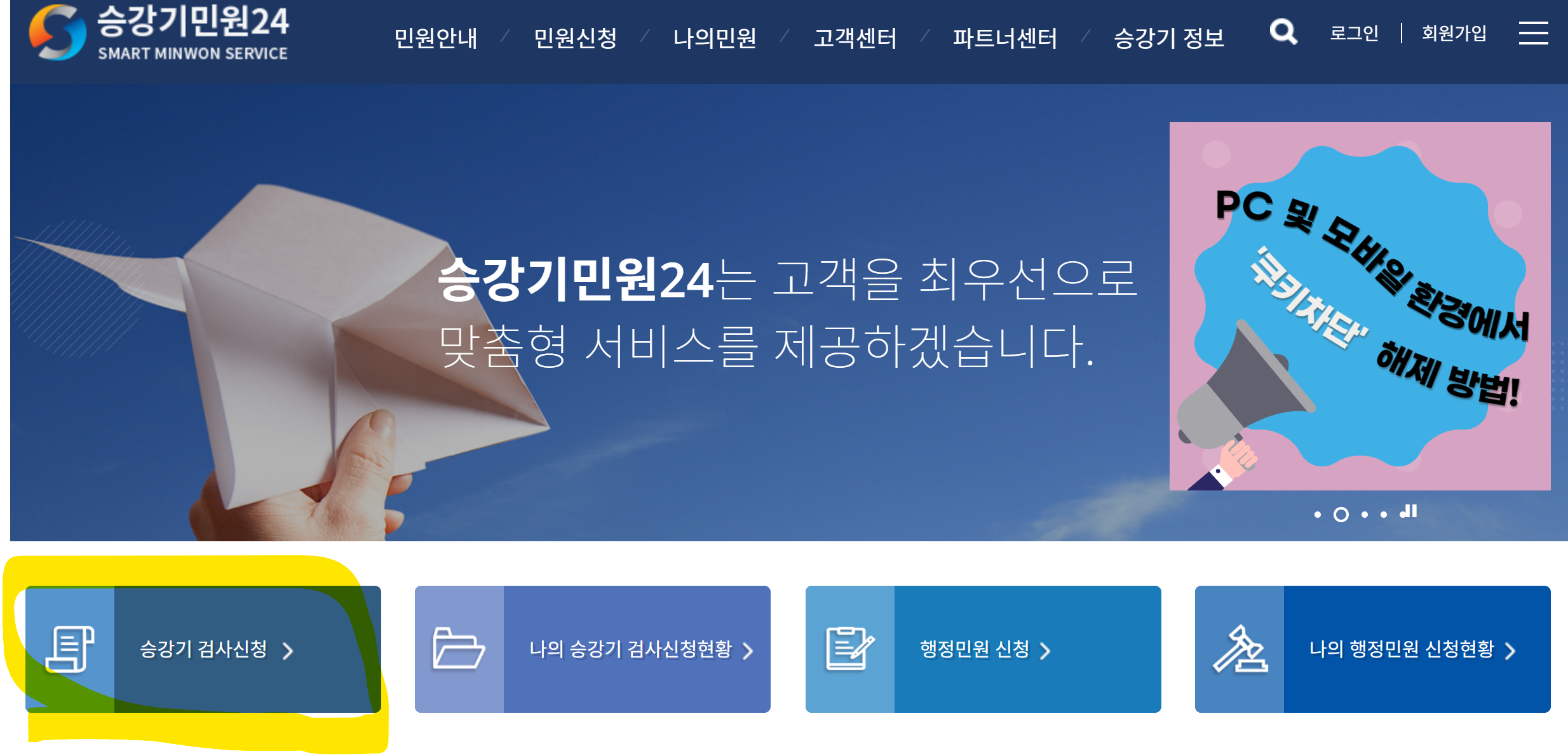 승강기 검사를 신청하려면 간편하게 '승강기민원 24'사이트를 통해 신청할 수 있습니다.