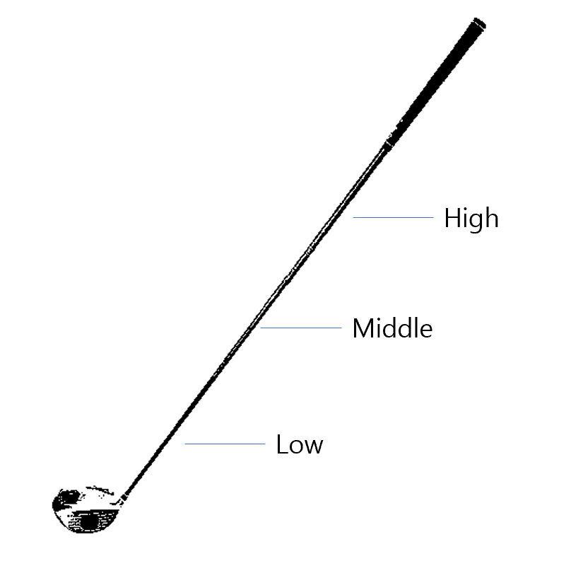 하이킥, 미들킥, 로우킥은 전체 샤프트의 헤드 부분에서 그립 쪽으로 3-40% 지점에서 구분됩니다. 하이 킥포인트는 상대적으로 위쪽 부분이 아래쪽 부분보다 더 휘어짐이 많을 경우, 하이킥 포인트로 구분합니다.