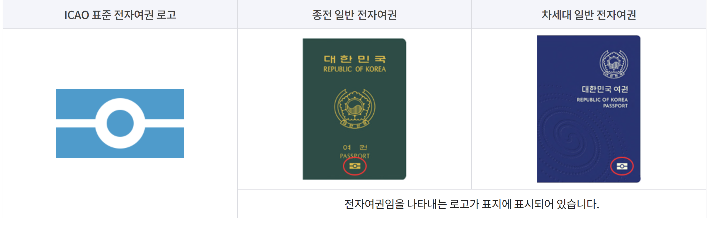 일반 전자여권은 아래와 같은 로고가 표시되어 있습니다.