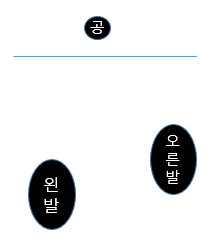 왼발 위치와 오른발의 위치 교차 - 왼발은 아래쪽, 오른발은 위쪽으로 스탠스를 합니다.