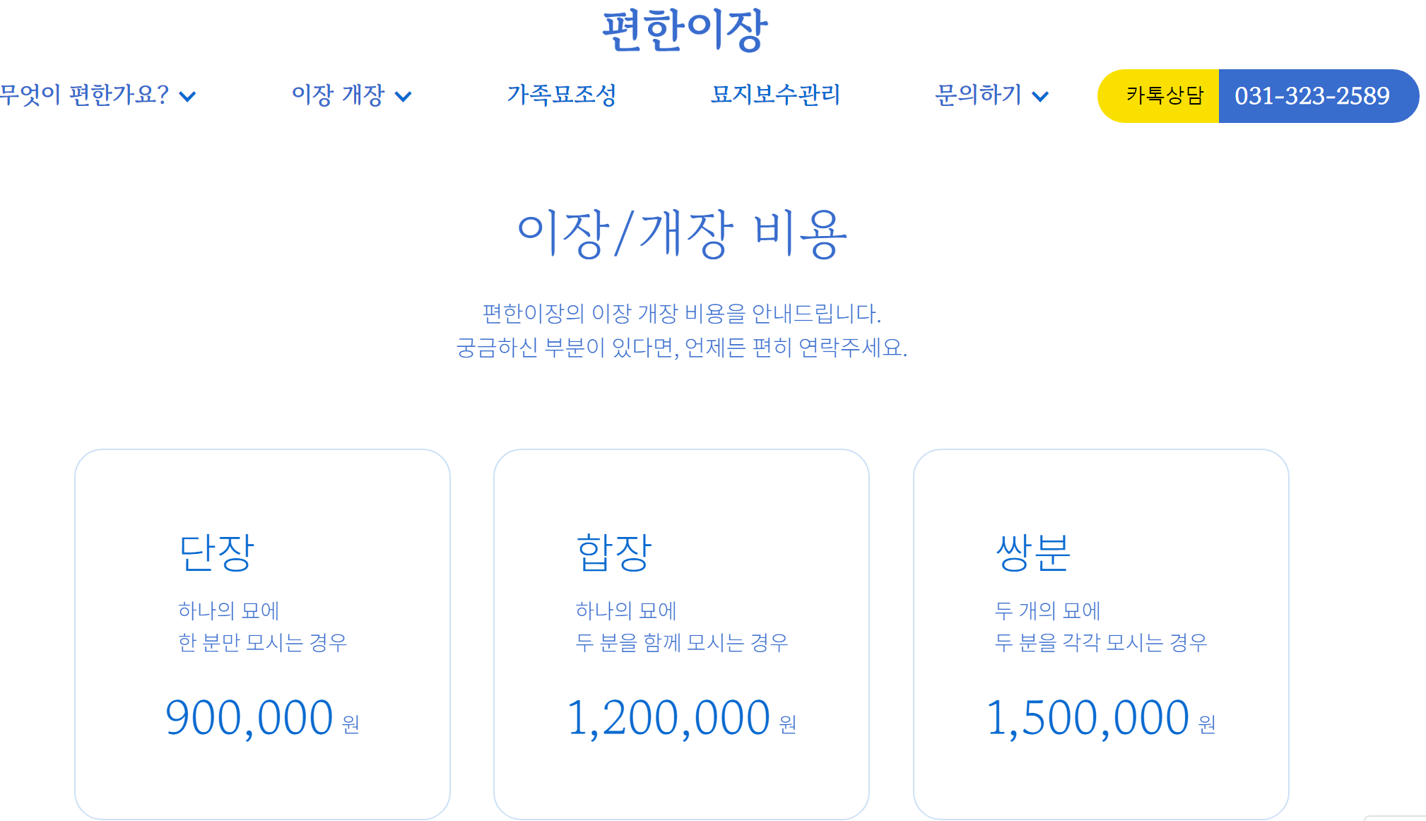 기본 묘지 1기에서 1구를 개장하여 화장하는 절차까지 포함하는 비용입니다. 단장, 합장, 쌍분으로 나눠집니다.