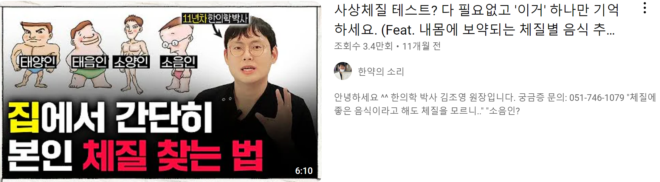 - 식이 요법: 부족한 요소와 관련된 식품을 섭취하여 균형을 맞출 수 있습니다. 예를 들어, 불(火)이 부족하면 매운 음식, 물(水)이 부족하면 수분이 많은 음식을 섭취하는 것이 도움이 됩니다.