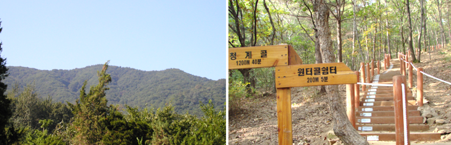 - 개나리골: 산림욕장 입구.