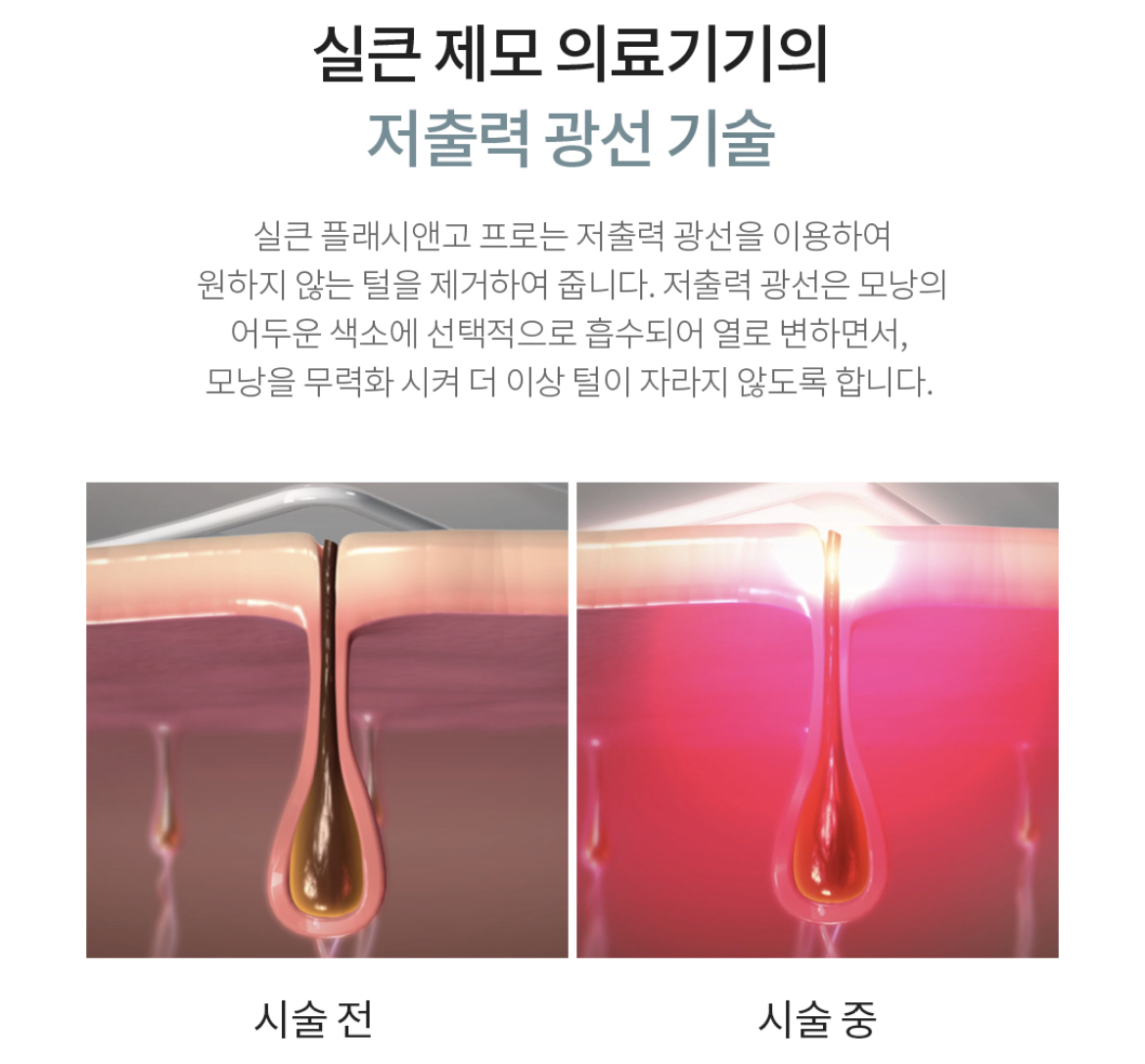 저출력 광선을 이용해서 털을 제거해 준다고 합니다. 이 광선들은 얇은 털보다는 굵은 털에 더 효과를 빠르게 느낀다고 해요.