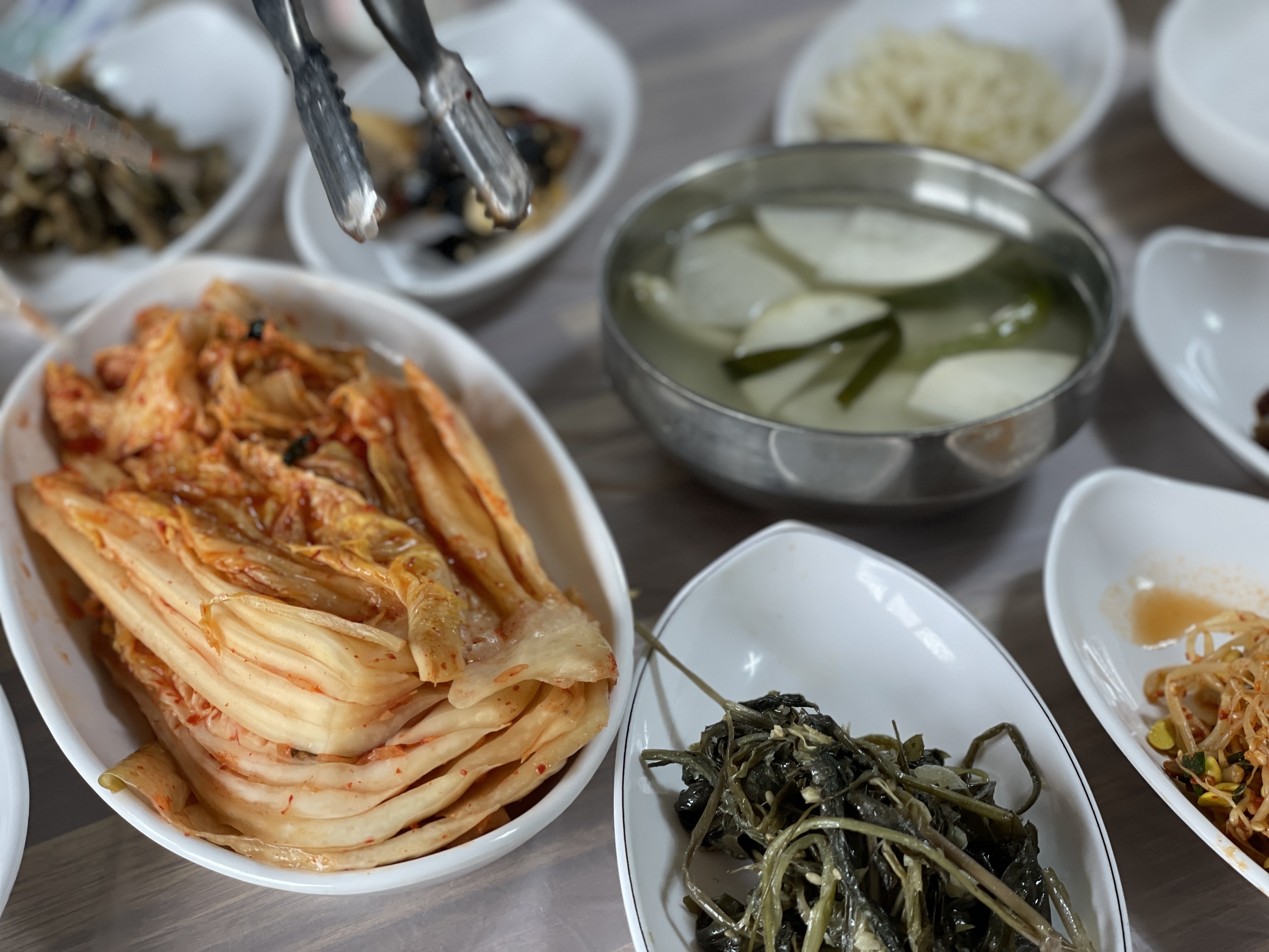 기본 반찬들이 너무 맛있어서 본메뉴 나오기도 전에 막 먹었습니다. 특히 김치는 아삭하고 시원한 김치의 특유의 아삭하고 달달한 맛이 좋았어요. 사진에서도 잘 표현된 것 같아요. 배추 반포기씩 주셔서 모자라지않고 맛있게 먹었습니다. 물김치는 한그릇 더 리필했네요. 시원하고 무가 가을무로 음식하셨는지 아삭하고 맛있더라구요.