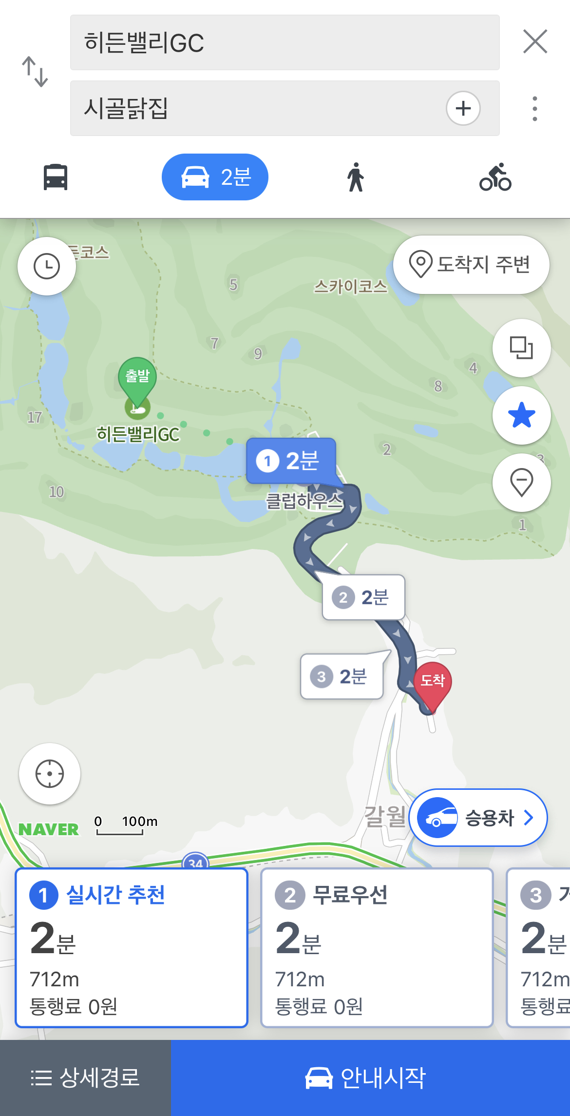 히든밸리cc에서 나가다 보면 바로 712m거리에 위치해서 나오자마자 바로 식당이 있어요.