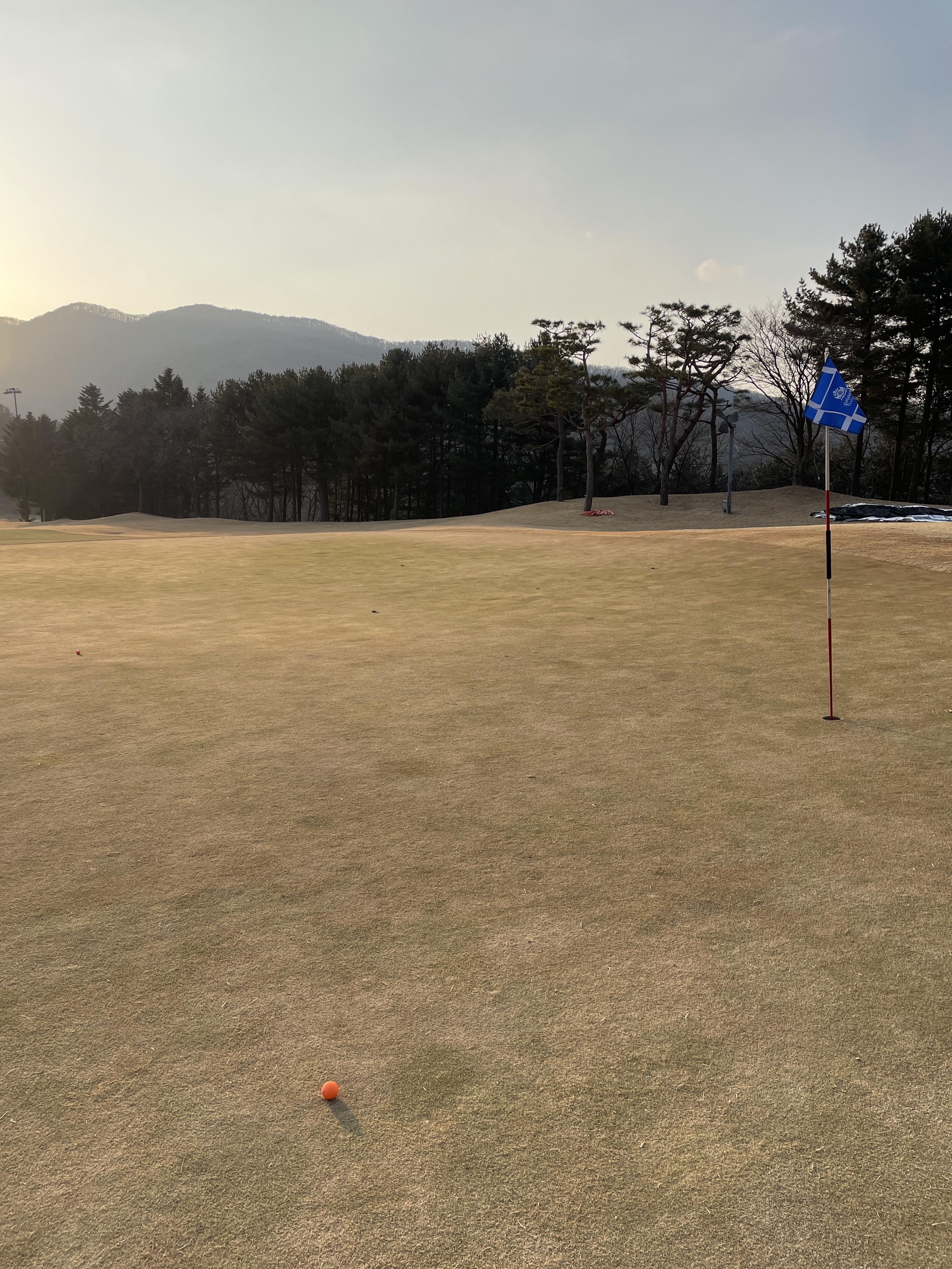 겨울이라 그린이 많이 튀고 잔디가 별로일 거라고 예상하고 갔는데, 그린도 안 튀고 공을 잘 받아주더라고요.
