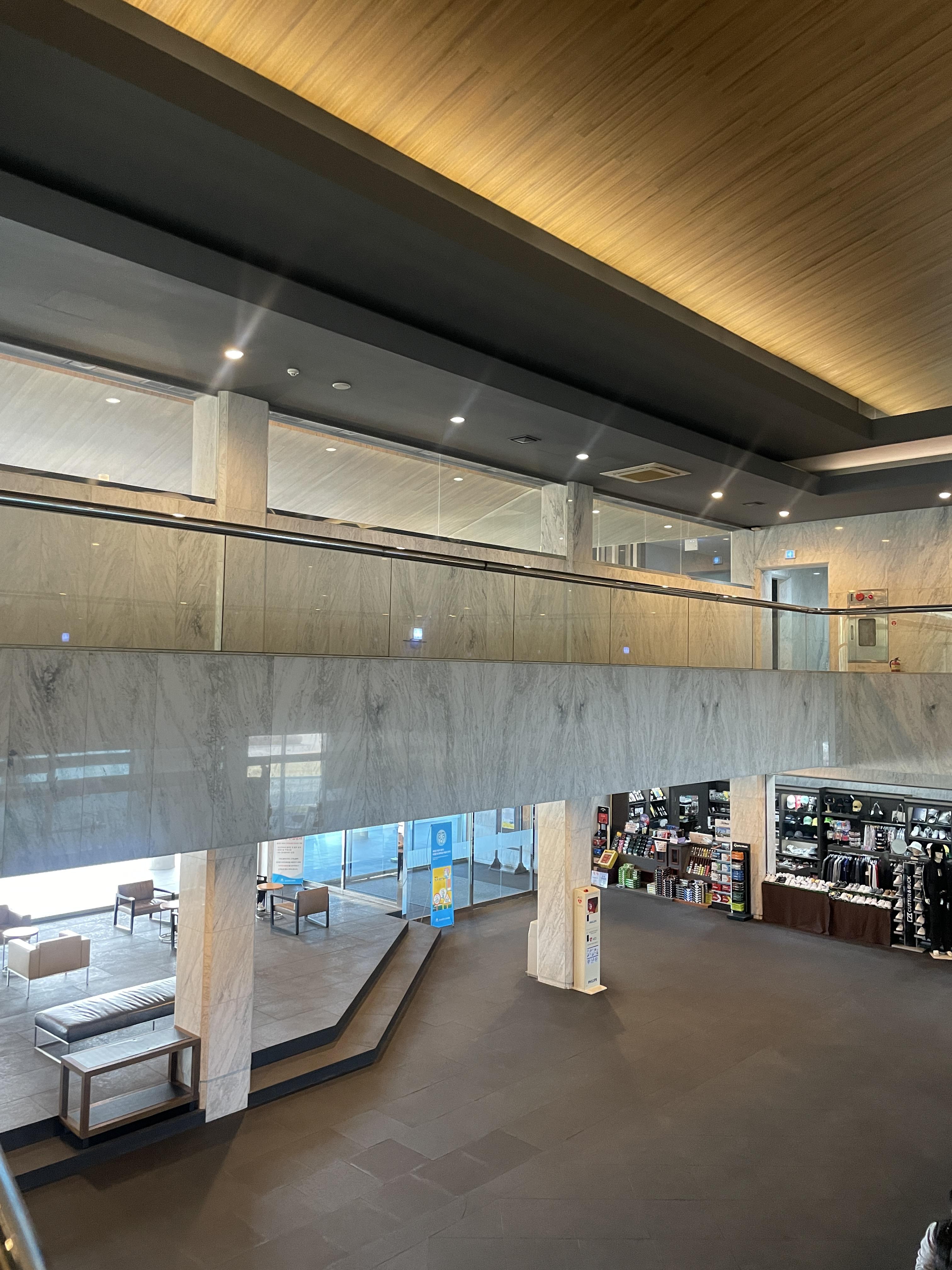 클럽하우스 내부인데 조형물 같은 것은 없었지만 깔끔하고, 구장을 바라보는 방향으로 탁 트여있습니다.