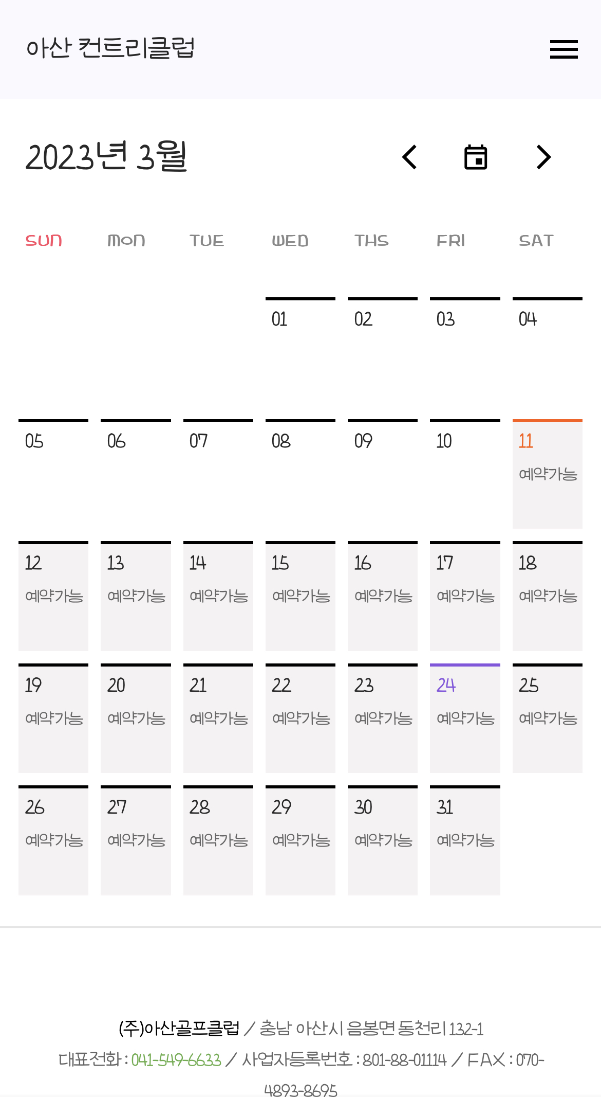 홈페이지 리뉴얼돼서 이전 유선예약과는 다르게 티업 시간을 홈페이지 내 시스템을 통해 확인할 수 있고 예약할 수 있습니다.