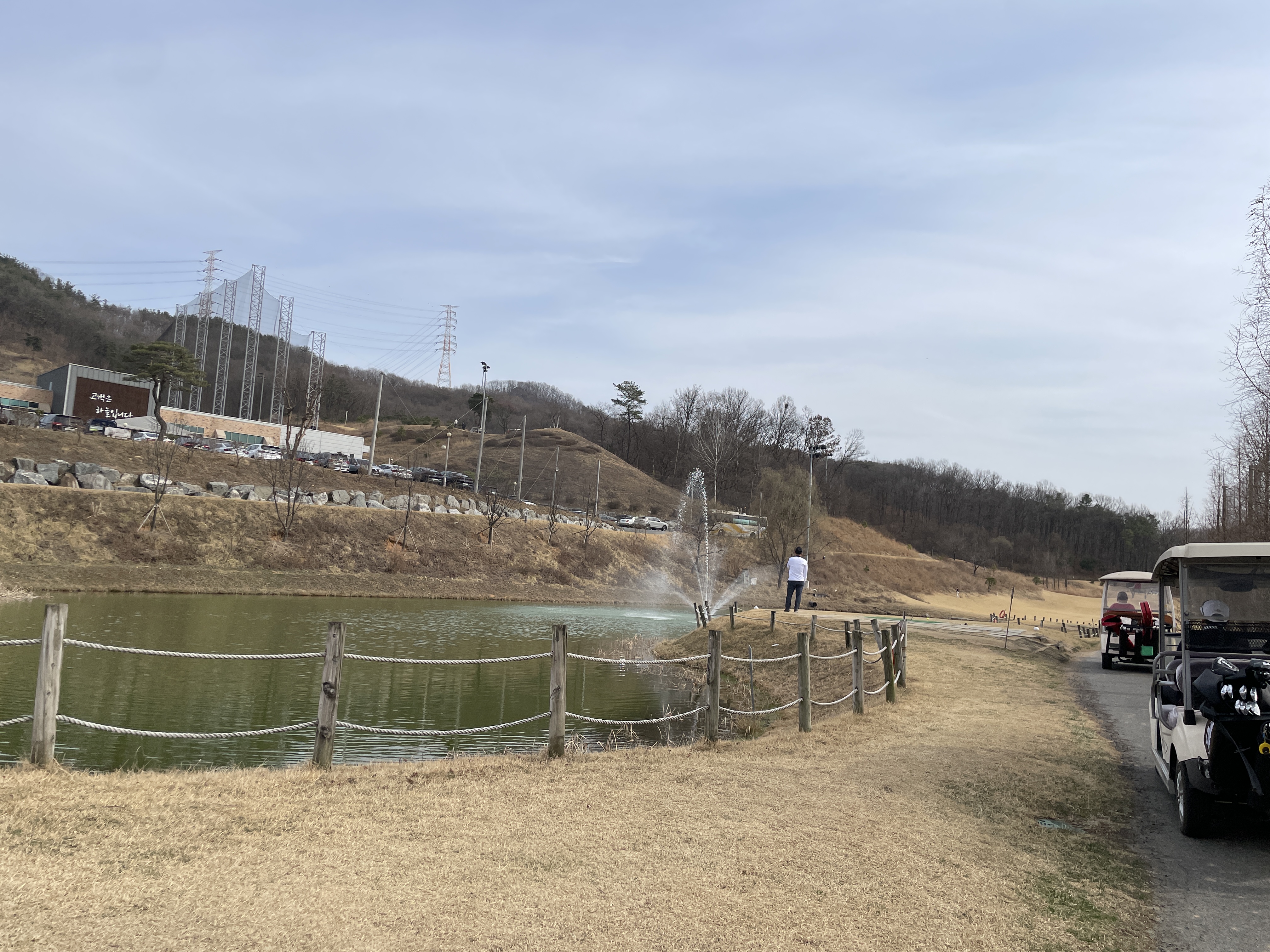 낮 시간이고 춥지 않아서 그런지 차들도 많고 사람도 많았어요. 이곳은 티업시간 10분 전에 접수를 해야 하고 선결제를 해야 합니다! 카트비와 그린피를 결제하고, 스코어카드를 받아야 해요. 스코어카드는 수기로 작성합니다. 데스크에서 결제하고 펜과 종이를 꼭 챙겨가세요!