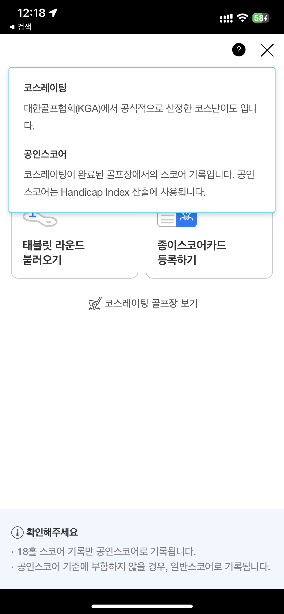 코스레이팅이 완료된 골프장이서 라운드를 할 경우, 태블릿이나 종이스코어로 공인스코어 등록이 가능합니다.